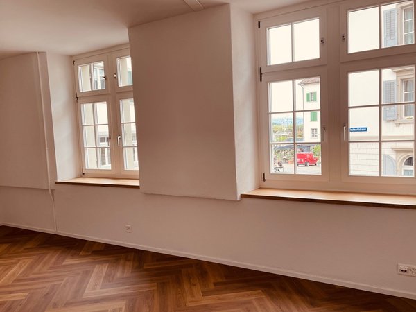 Suchen Sie inspirierende Räumlichkeiten fürs Wohnen und Arbeiten? Praxis (Therapie, Coaching, Gesundheit) Büro (Agentur, Kanzlei, Architektur, Beratung) oder Schulungs- und Seminarraum. Im 1. OG des Hauses zum Hecht direkt am Fischmarktplatz bieten Ihnen unsere grosszügigen, loftartigen (130 m2) Räume eine anregende Umgebung sowohl zum Arbeiten als auch zum Wohnen. Nur 4 Gehminuten vom SBB Bahnhof entfernt. Restaurants, Kino und Läden in unmittelbarer Umgebung. Nutzen Sie diese Gelegenheit und überzeugen Sie selbst anlässlich einer Besichtigung!