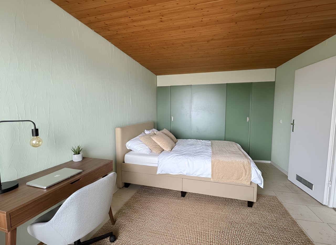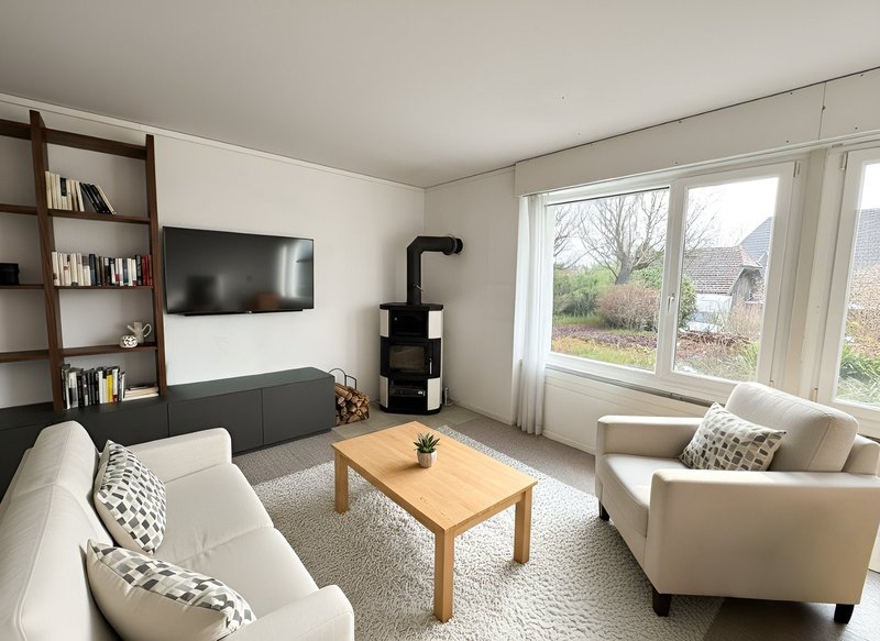 Die Liegenschaft wird vor der Neuvermietung umfassend aufgefrischt: Diverse Bodenbeläge werden fachgerecht aufgearbeitet, das gesamte Haus wird innen neu gestrichen und der bisherige Teppichboden im Wohnzimmer wird durch ein Vinylboden ersetzt. Dadurch präsentiert sich das Haus in einem sehr gepflegten und zeitgemässen Zustand.