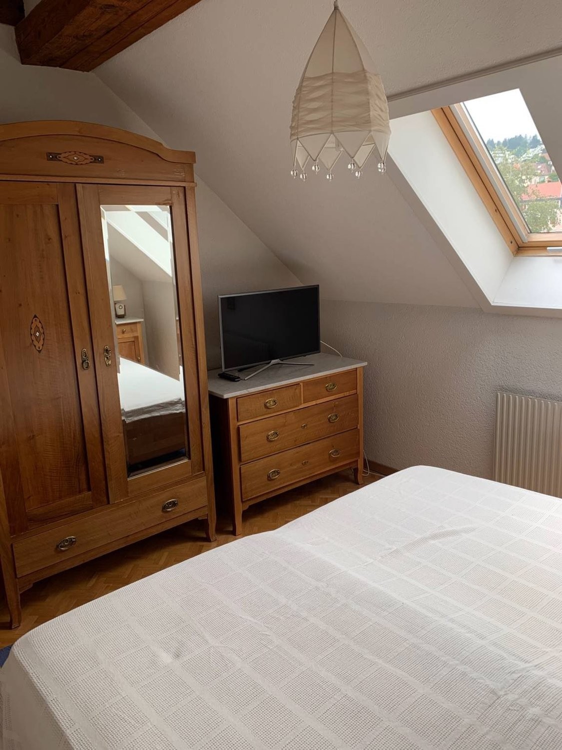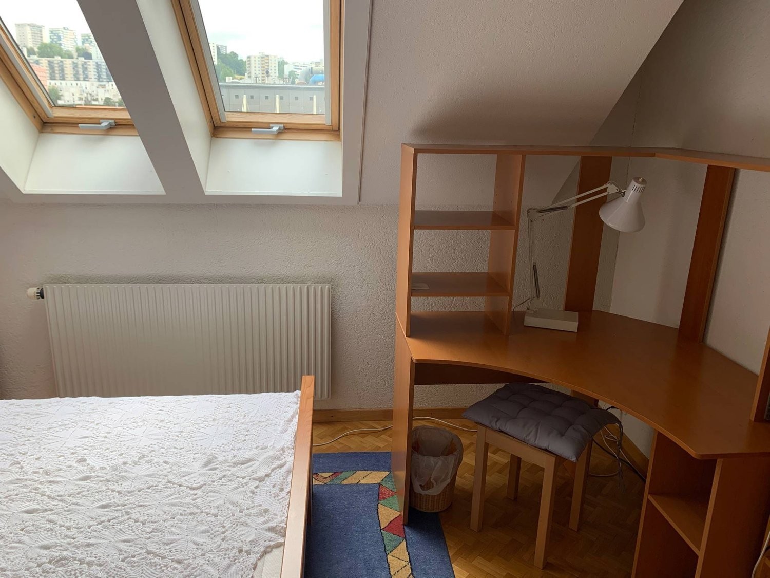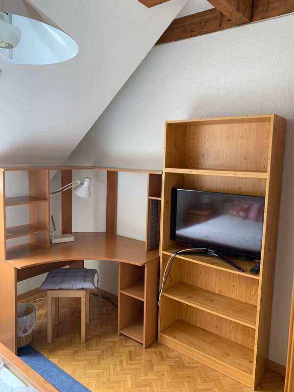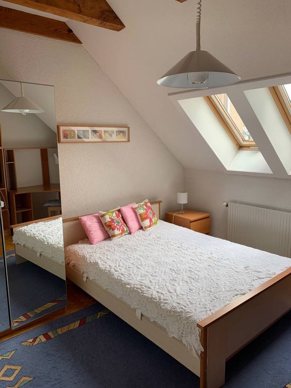 À louer dans grand appartement triplex chambre avec TV, internet, salle de bain à partager avec une autre chambre. Cuisine en commun. Durée un mois minimum.