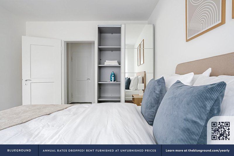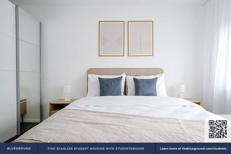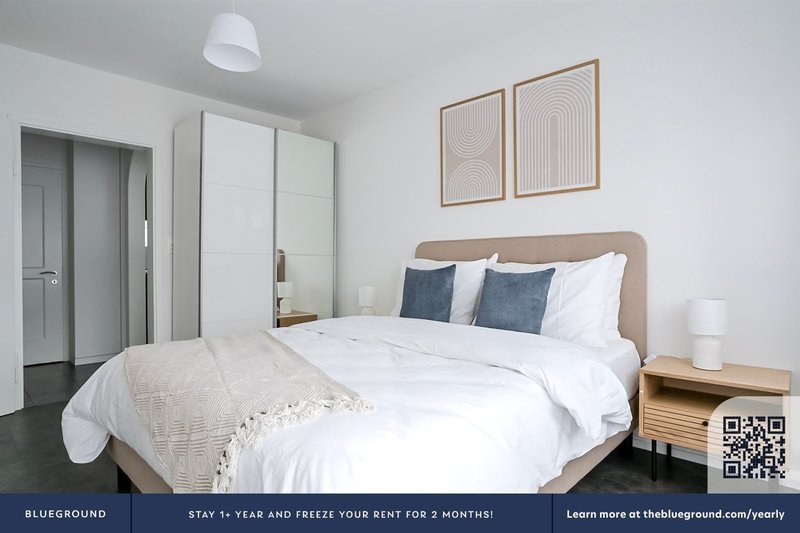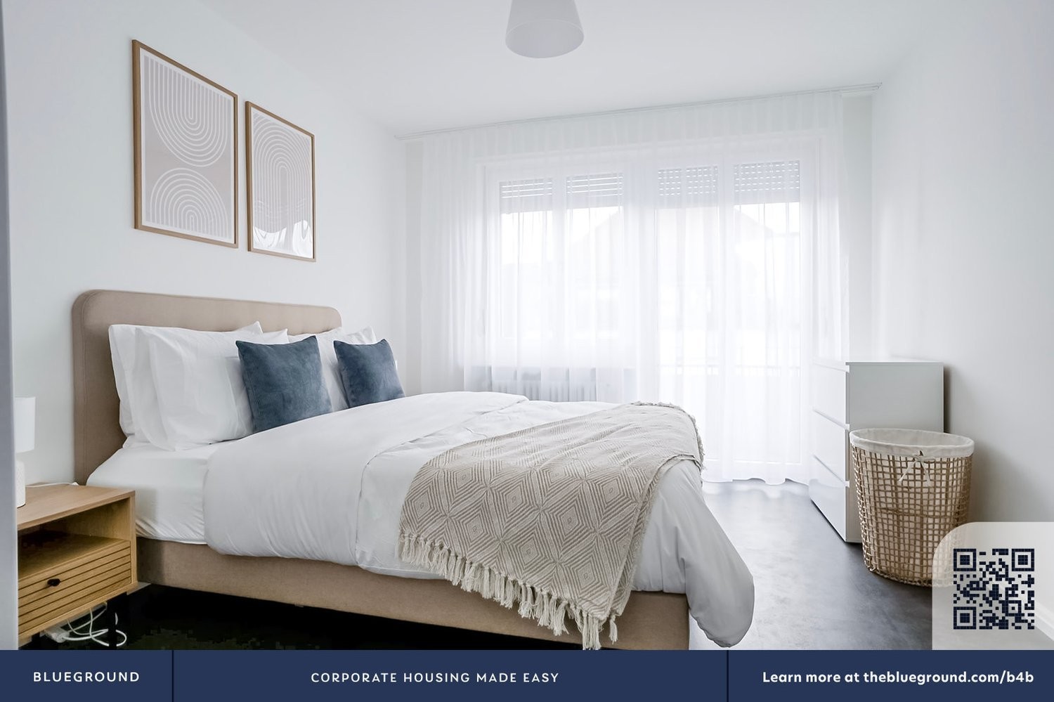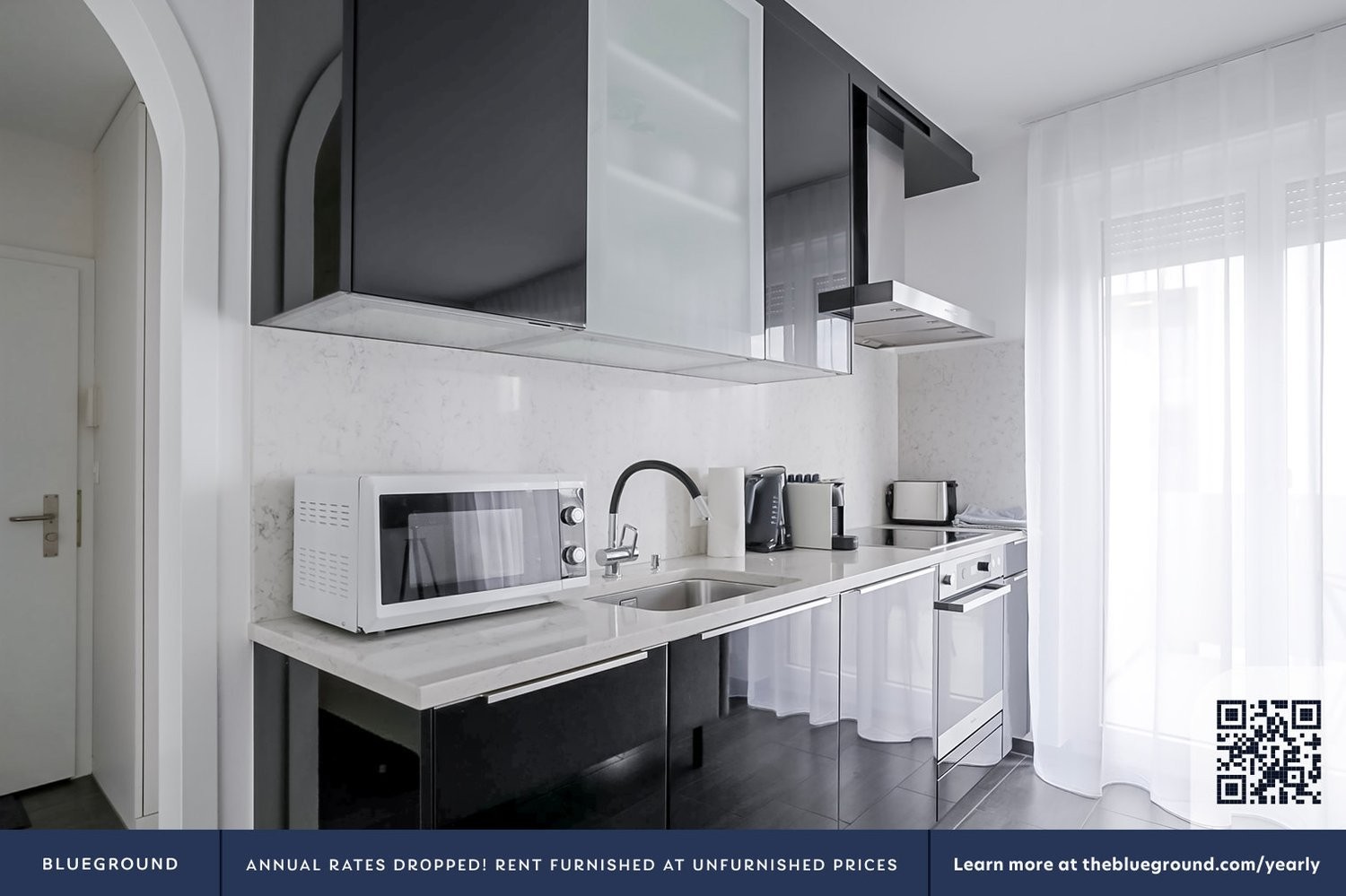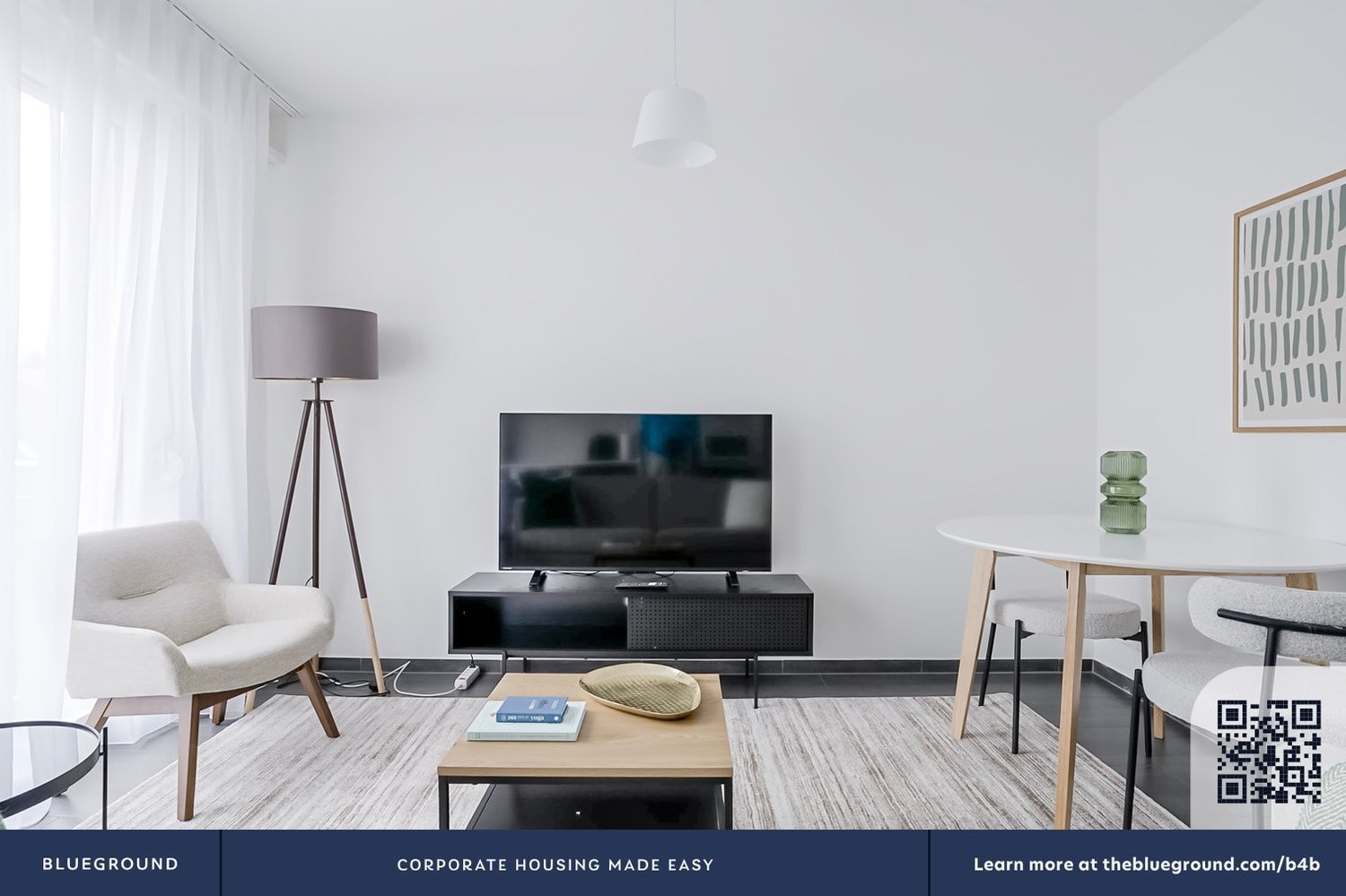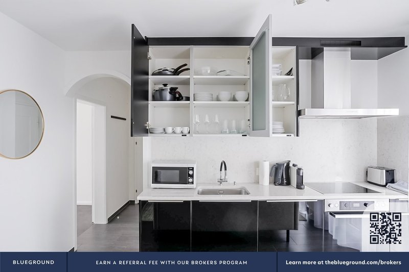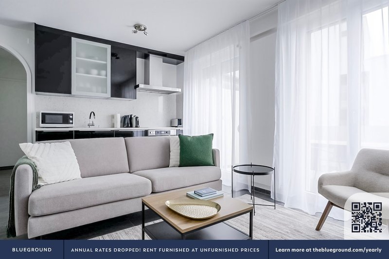 Dieses Blueground Wohnung bietet flexible Mietoptionen, sodass Sie es für einen Monat, ein Jahr oder länger buchen können.Wir sind sehr stolz darauf, dass alle gezeigten Fotos in unseren eigenen Einheiten mit unserer tatsächlichen Einrichtung aufgenommen wurden. Das heißt, wir aktualisieren regelmäßig unsere Dekoration und Möbelanordnung, die von dem abweichen kann, was abgebildet ist.