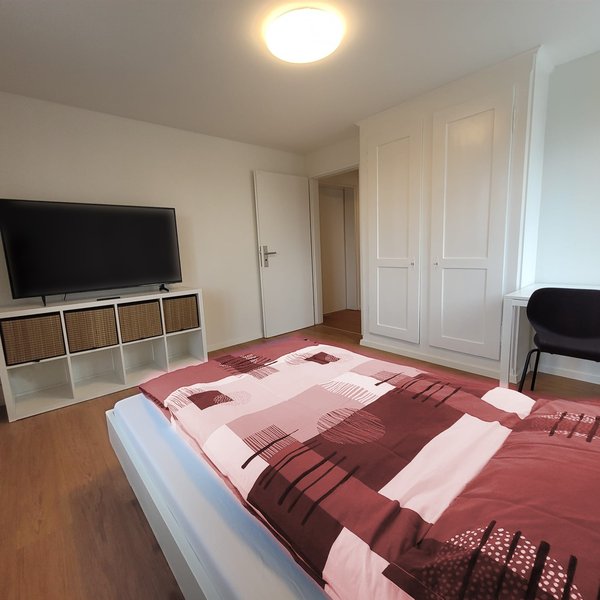 We are offering you a well-maintained furnished room in Dietikon. The apartment is cleaned weekly – and this service is already included in the rent. Cleanliness is very important to us! The room is bright and modernly furnished, with a comfortable bed, a table with a chair, a large wardrobe, lamps, a shelf, and an LCD TV. You will also receive free WiFi.