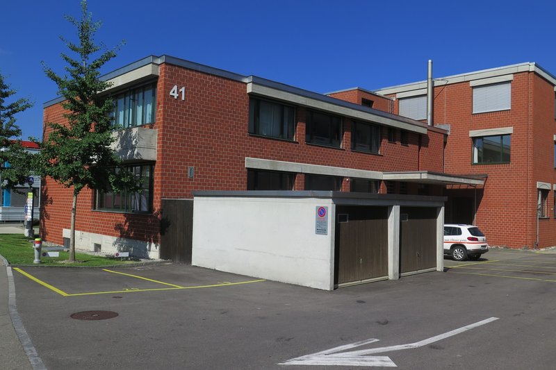 Das Geschäftshaus ist grosszügig angelegt und bildet mit der markanten Backsteinbauart einen augenfälligen Punkt.