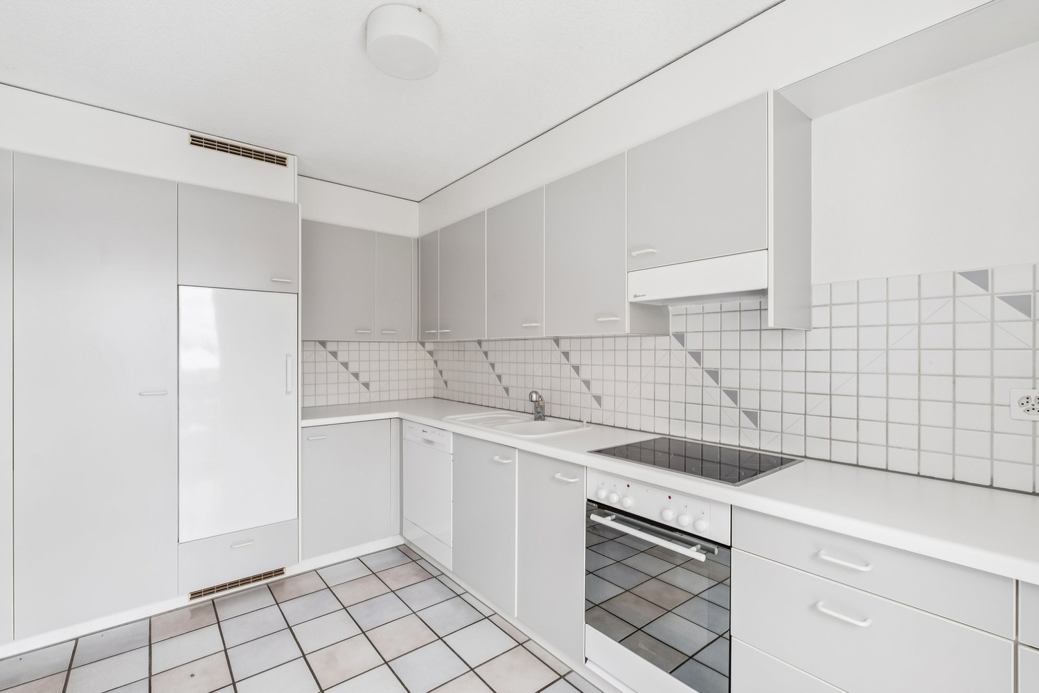 helle Küche mit Glaskeramikherd und Geschirrspüler