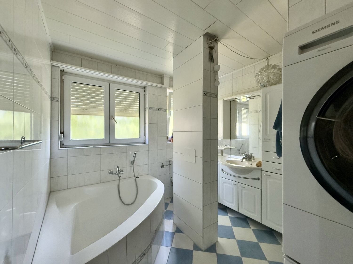 - Grosses Badezimmer mit Fenster und eigenem Wäscheturm