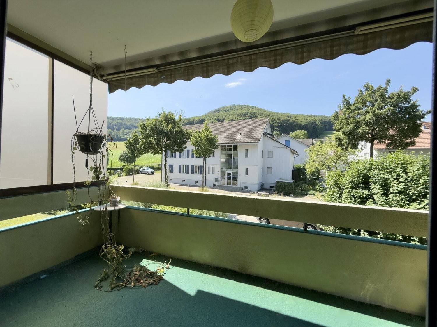 Der Balkon mit rund acht Quadratmetern lädt zum Verweilen im Freien ein. Einkaufsmöglichkeiten, Schulen und der Bahnhof sind in wenigen Minuten erreichbar. Die Umgebung ist ruhig, grün und familienfreundlich.