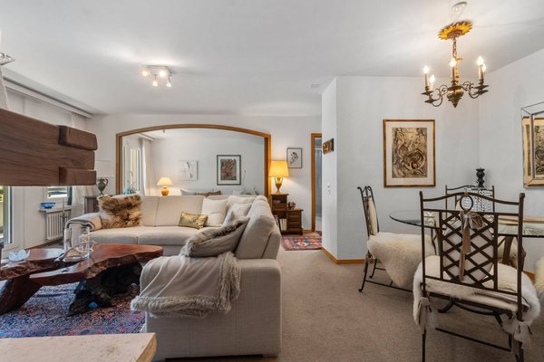 Die gepflegte Wohnung wurde nur privat genutzt. Der offene Wohn- und Essbereich mit Cheminée und grosser Fensterfront schafft eine helle, einladende Atmosphäre. Das angrenzende Schlafzimmer mit abschliessbarer Schiebewand ist mit einem Schlafsofa ausgestattet. Das zweite Schlafzimmer bietet Platz für 4 Schlafgelegenheiten. Vom grossen Balkon mit Südlage geniessen Sie eine offene Sicht ins umliegende Grün. Das moderne Badezimmer wurde 2025 im Rahmen einer Strangsanierung erneuert. Die Küche verfügt über moderne V-Zug Geräte (2022). Ein Tiefgaragenplatz, ein Kellerabteil und ein Skischrank sind vorhanden und im Kaufpreis inbegriffen. Das Inventar kann auf Wunsch weitestgehend übernommen werden.