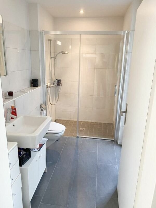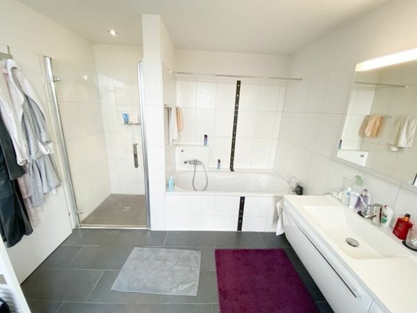 Bad mit Badewanne, Dusche, Doppellavabo, WC und Fenster