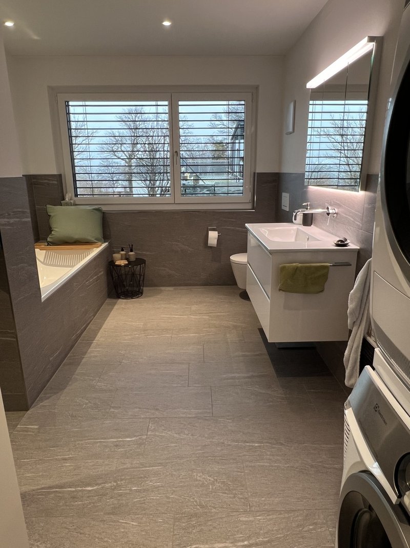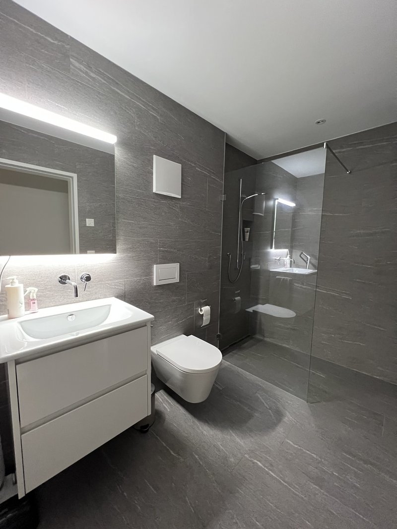 Nennenswert sind zwei moderne Badezimmer (zwei Duschen und eine Badewanne) mit eigenem Waschturm.