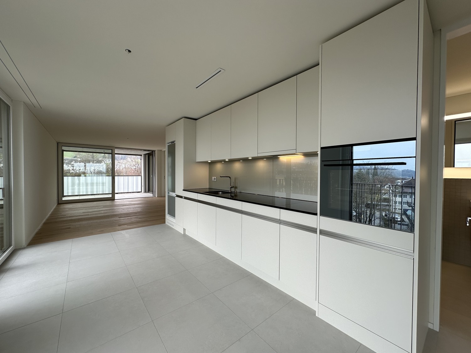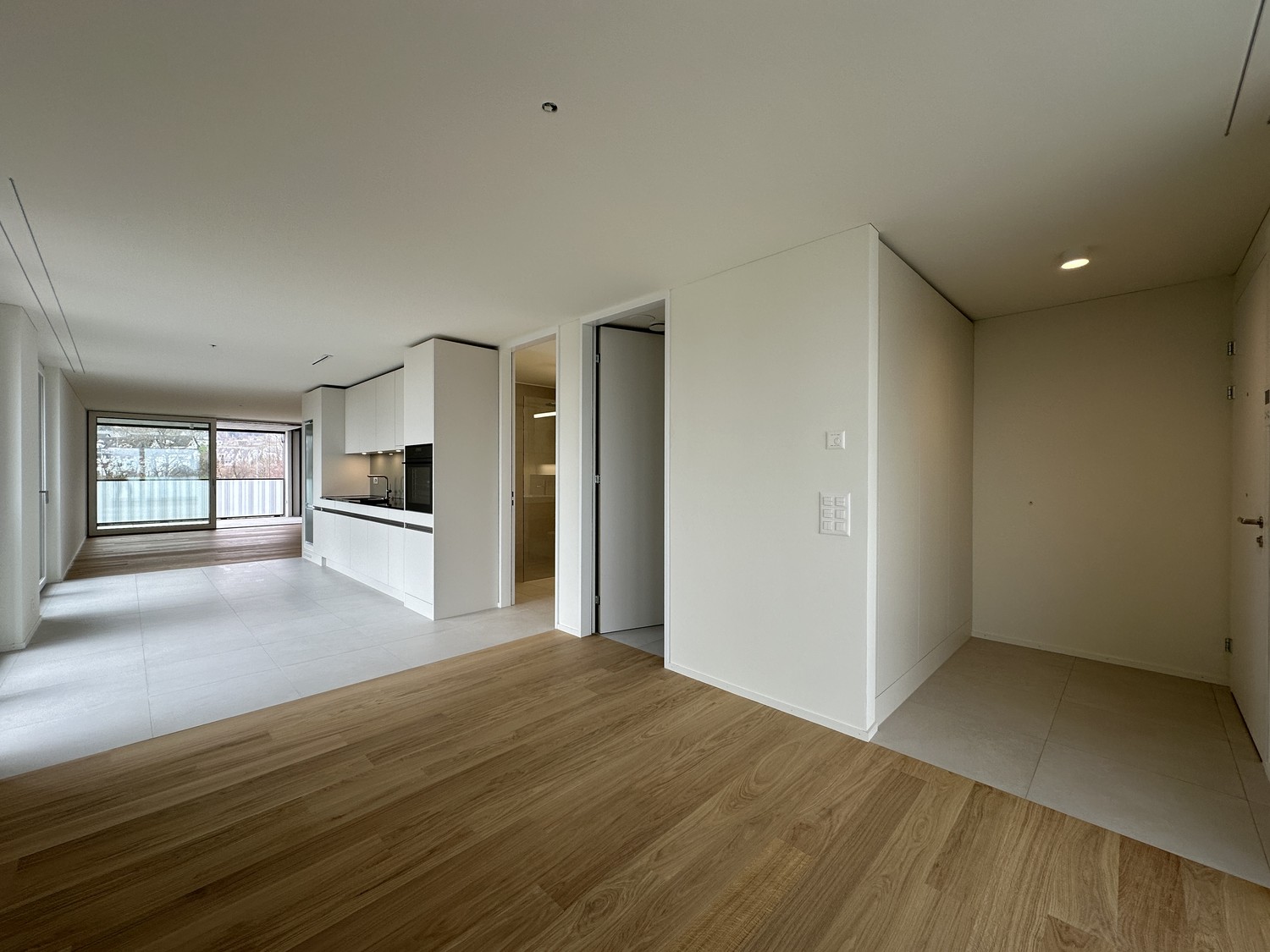 Hochwertiger Eichenparkett und Feinsteinzeugplatten
