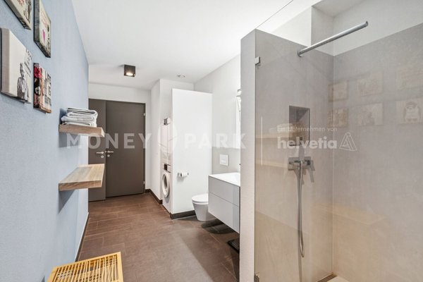 Bereits beim Betreten der Wohnung empfängt Sie ein heller, offener Wohn- und Essbereich, der durch seine Grosszügigkeit und den direkten Zugang zur Terrasse mit schöner Aussicht begeistert. Die moderne, gut ausgestattete Küche ist harmonisch in den Wohnbereich integriert. Auf der gegenüberliegenden Seite der Wohnung befindet sich das ruhig gelegene Schlafzimmer mit direktem Zugang zur zweiten, überdachten Terrasse mit Blick in den Innenhof. Angeschlossen ist ein elegantes, en-suite Badezimmer mit bodenebener Dusche und einem praktischen Waschturm. Im Jahr 2022 wurde in der gesamten Wohnung ein neuer Boden in schöner Holzoptik verlegt, der das moderne Ambiente unterstreicht. Dank Minergie-Standard, kontrollierter Wohnraumlüftung und effizienter Bauweise profitieren Sie von einem angenehmen Raumklima. Die Wohnung ist vollständig barrierefrei und über einen Lift bequem erreichbar. Zusätzlich kann für CHF 50'000.- ein Tiefgaragenparkplatz dazu gekauft werden.