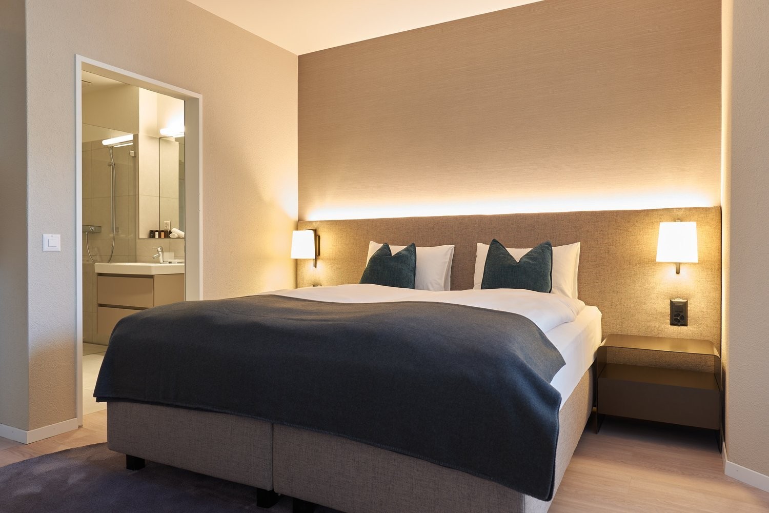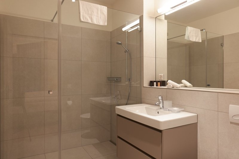 Hochwertige und moderne Möbel erwarten Sie in Ihrem schönen Apartment, darunter ein grosses Doppelbett (180×200 cm) mit zwei Nachttischen, einem grossen Kleiderschrank mit genügend Stauraum, einem Schreibtisch, einem Relax-Sessel und einer kleinen Sitzecke zum TV schauen. Alle Apartments bieten eine voll ausgestattete sowie hochwertige Küche, die keine Wünsche offen lässt und ein helles Badezimmer mit ebenerdiger Dusche.