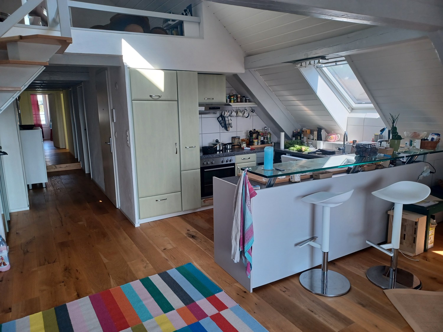 Die Wohnung verfügt über einen hübschen Nischen-Balkon gen Süden, eine offenen Küche im grosszügigen Wohnzimmer und Waschmaschine/Tumbler.