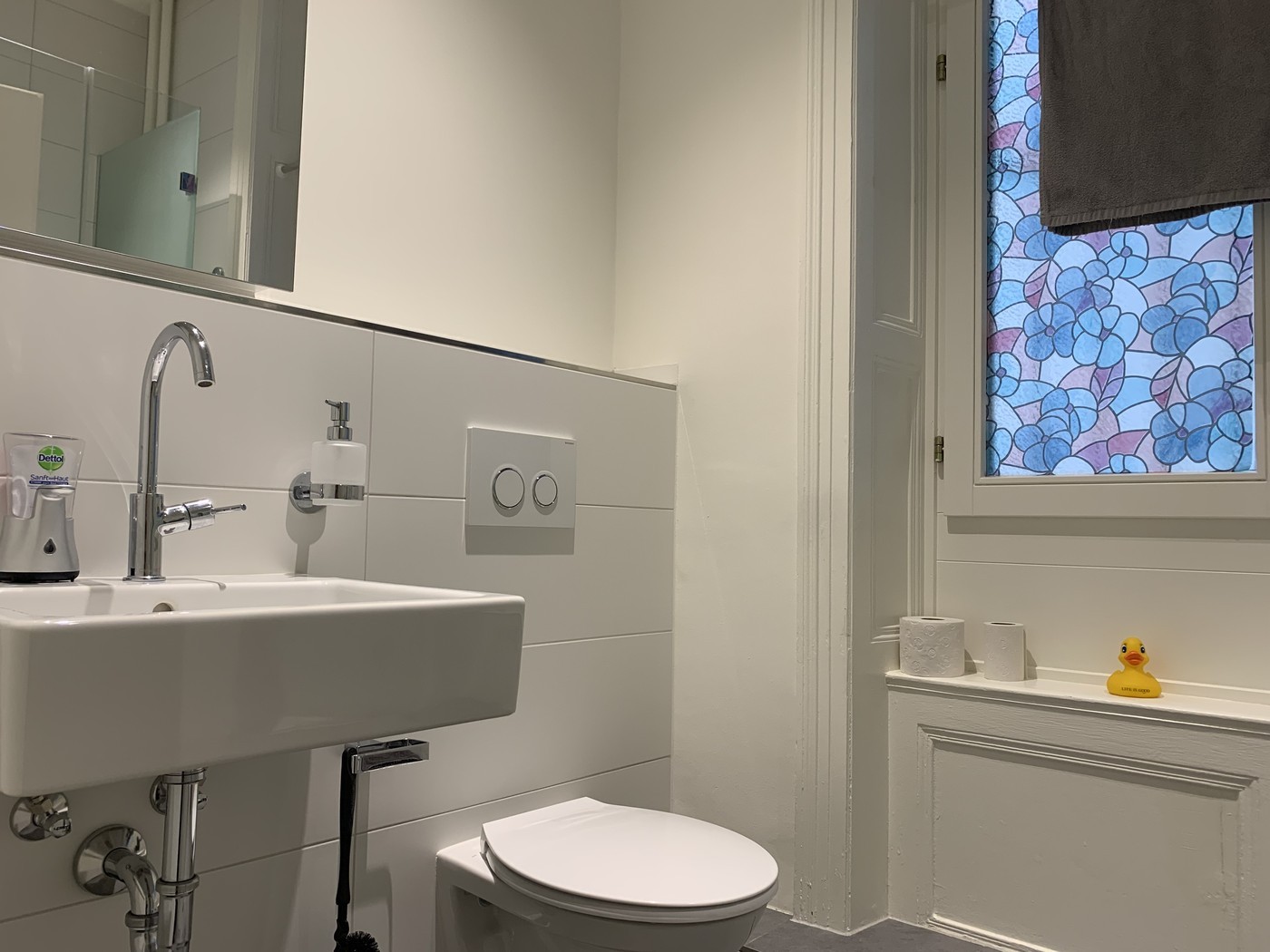 Das hell durchflutete Loft im 1. Obergeschoss versprüht ein gemütliches Flair. Es verfügt über zwei Räume, eine offene Teeküche, ein Badezimmer mit Dusche und einen eigene Waschturm. Dieses einzigartige Loft verfügt überdies über einen hochwertigen Dielenboden, hohe Decken und grosse Fenster.
