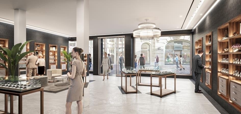 Luxuriöse Labels wie Louis Vuitton, Hermès, Lacoste, COS, Max Mara, Breitling und Cartier gelten in diesem Abschnitt der Freien Strasse zu den Nachbarn der Mietfläche.