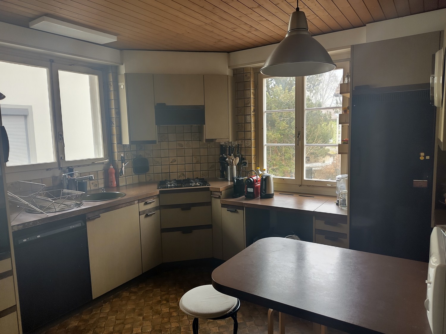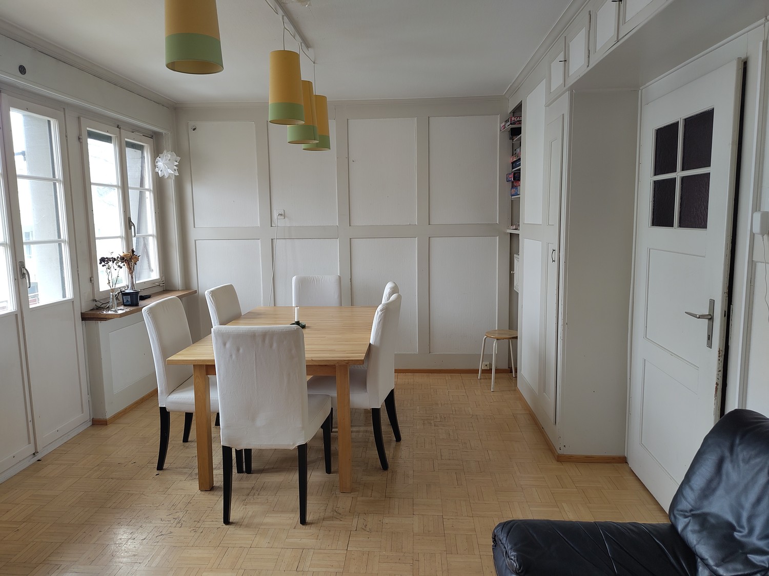 Das Zimmer ist Teil einer 5er WG. Es befindet sich in einem Altbau.