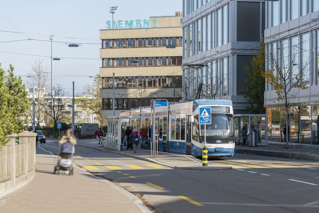 Tramlinie 3 (Haltestelle ,,Siemens") direkt am Areal