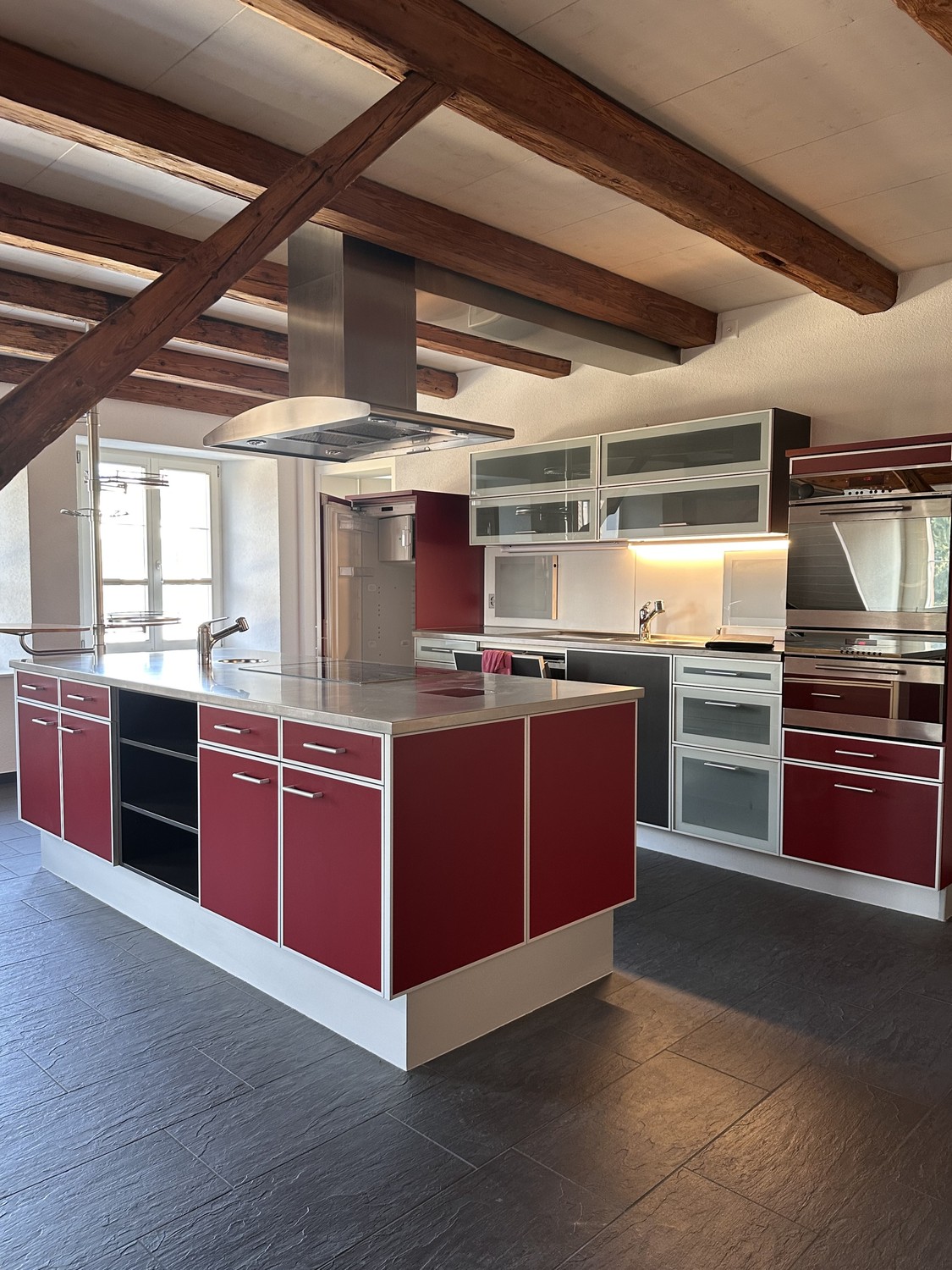 Küche mit freistehender Kochinsel, modernen Küchengräten und viel Stauraum