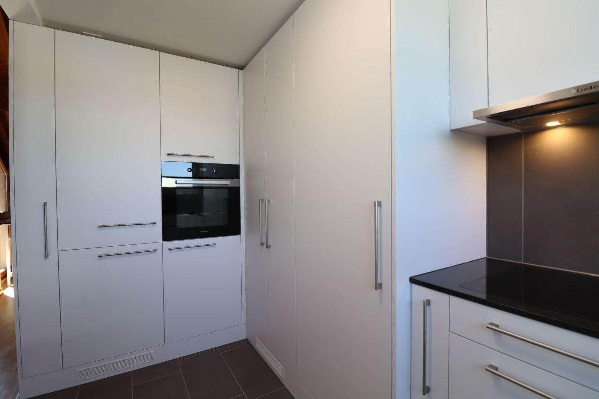 Moderne, halboffene Küche mit Geschirrspüler und grossem Kühlschrank