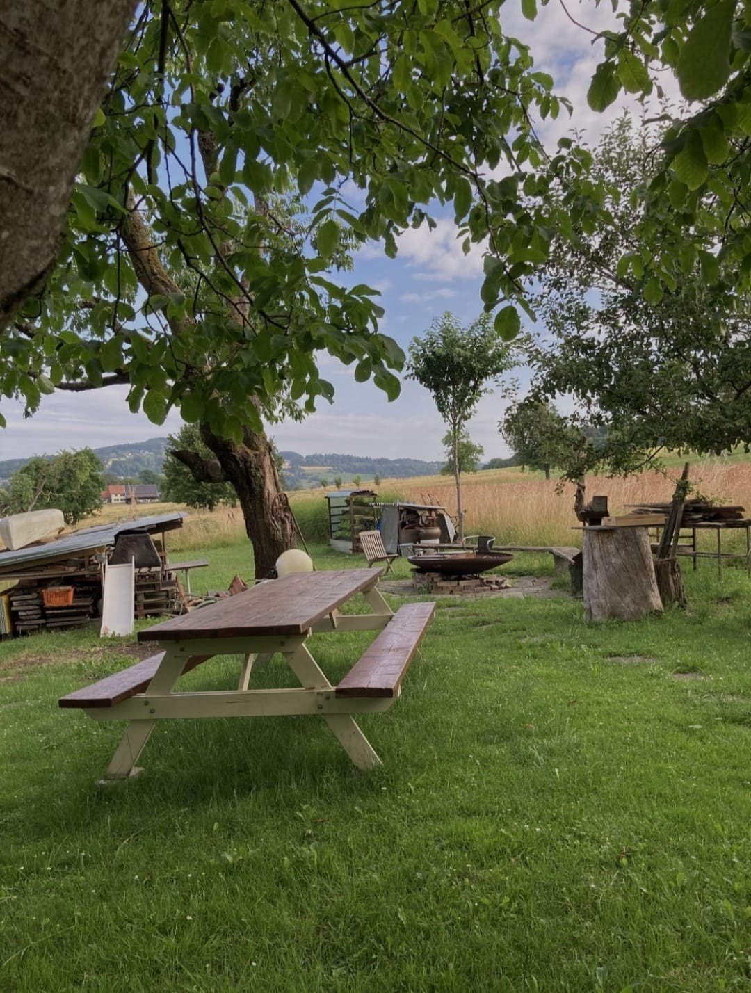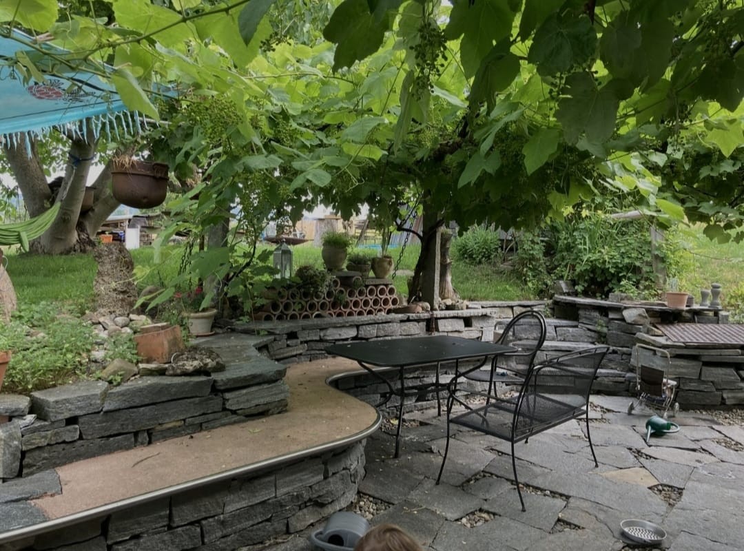 Multiple outdoor sitting areas, fire pit, hammock spots
