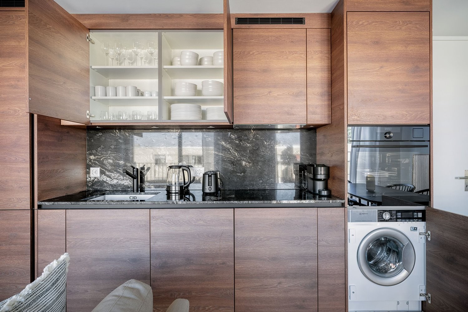 Wie bei jedem Blueground Wohnung finden Sie einen durchdacht gestalteten Raum mit schönen Möbeln. und eine voll ausgestattete Küche in diesem Zwei-Schlafzimmern Immobilie. Und dank unserer hochwertigen Matratzen können Sie sich entspannen, weil Sie sich immer wie zu Hause fühlen werden. Wenn Sie Lust auf etwas Spaß haben, können Sie die Zurich -Atmosphäre genießen oder sich die Unterhaltung mit dem kabellosen Premium-Lautsprecher oder dem Smart-TV direkt nach Hause holen. Diese Wohnung bietet auch Wäscherei in der Wohnung.
