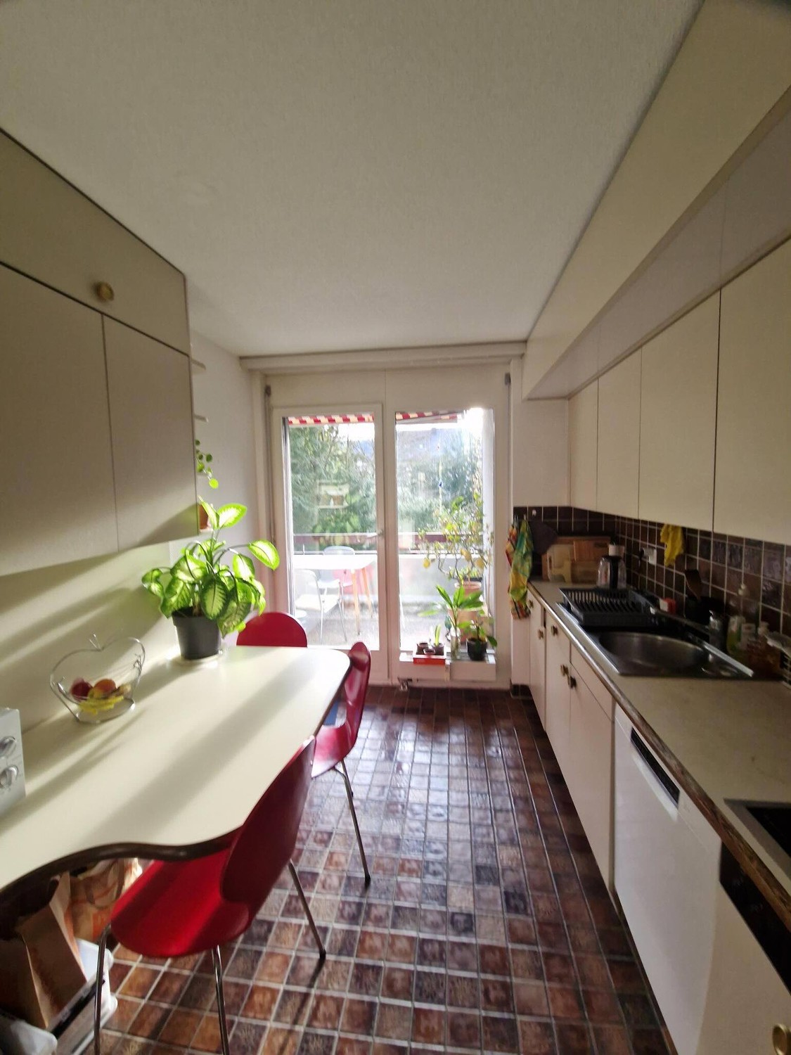 In unserer 4er WG mit einem grossen Balkon (mit ca. 4-5h direkter Sonne und Vogelgezwitscher), helles schnuckeliges Wohnzimmer, gut ausgestatteter Küche, mit vielen Einbauschränken, ist noch 1 Zimmer frei (ein weiteres wird im Mai frei). Haustiere sind leider keine möglich.