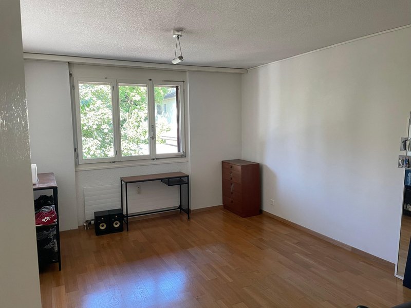 Das Zimmer; ist ca. 16qm gross und es gehört ein grosser Einbauschrank dazu. Es kostet inkl. Nebenkosten 912Fr. Bei uns werden zwei Zimmer frei, eines ab April (812Fr.) und eines ab Juni.