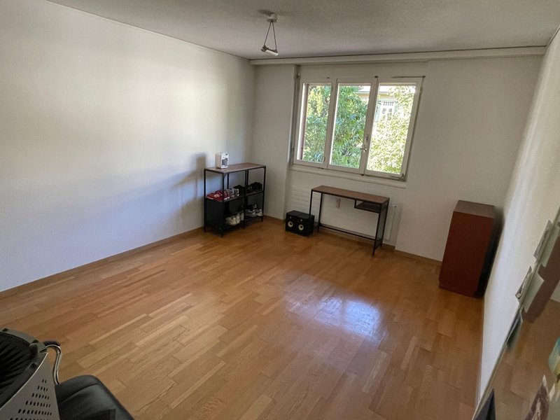 Die WG; Wir, Miriam (31) und Andy (36) wohnen seit einem halben Jahr in dieser Konstellation. Wir haben es gerne aufgeräumt und sauber. Wir kochen gerne und mögen Pflanzen. Bei der Arbeit haben wir alle mit Menschen zu tun (Schule, Kanton) und haben auch noch diverse Projekte nebenbei. Wir leben unabhängig, sind oft draussen unterwegs, und diskutieren gerne spontan über Politik, Menschen und die Welt. Ein sozialer Austausch ist uns wichtig. Dazu gehört auch mal ein gemeinsames Aareschwimmen. Auf Anfang April wollen wir gemeinsam das noch leere Wohnzimmer neu einrichten (Siehe das Bild des leeren Zimmers).