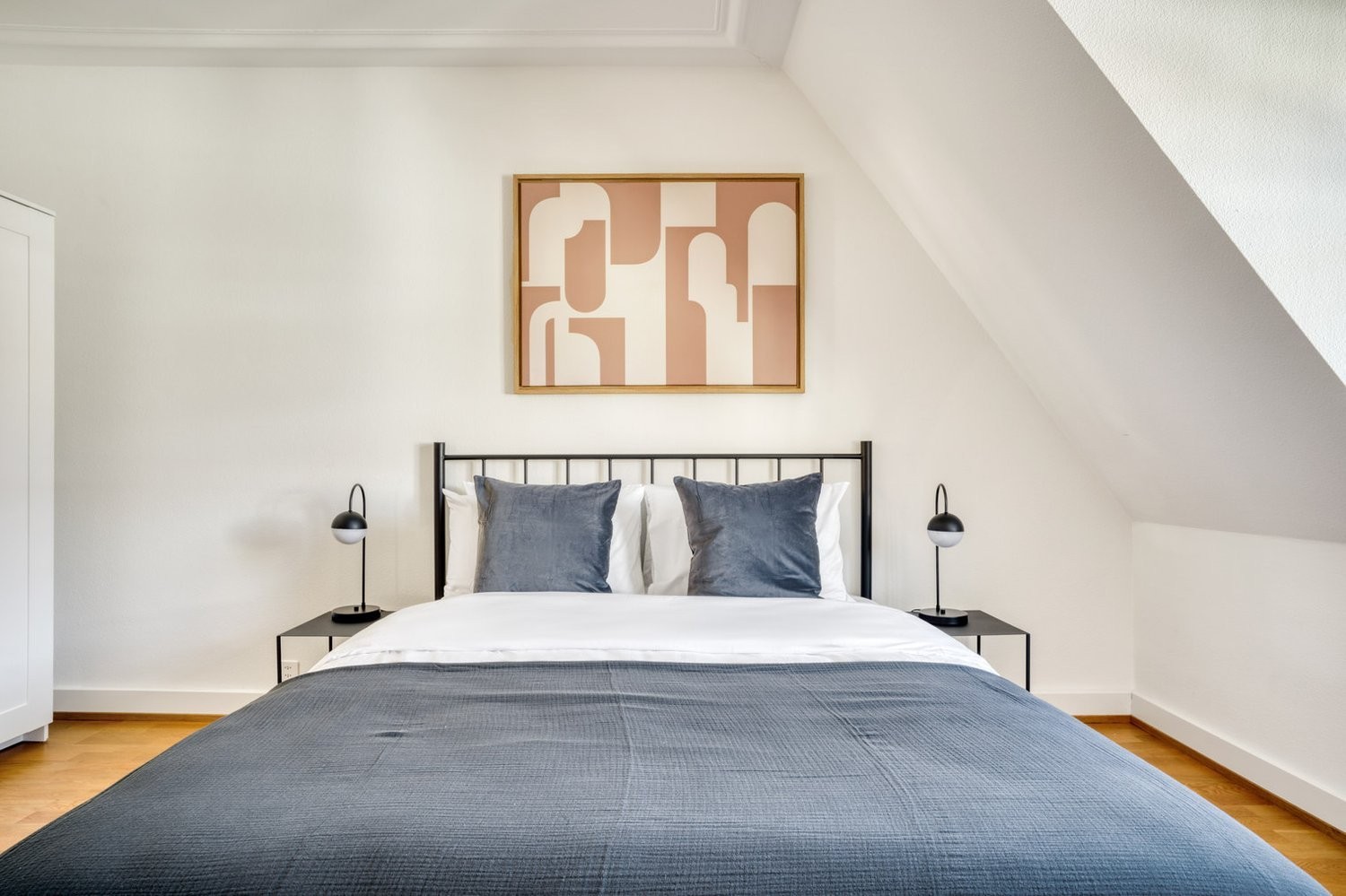 Diese möblierte Wohnung befindet sich in Breite, dem 4. Bezirk von Basel. Dieses kleine Viertel, das im Norden an den Rhein grenzt, liegt im Stadtteil Grossbasel. Der Flussabschnitt von Breite beherbergt mehrere gehobene Restaurants sowie einen Park. In der Nachbarschaft gibt es außerdem zwei große Supermärkte. Ein weiteres Highlight der Gegend ist der weitläufige Schwarzpark, eine wunderschöne städtische Grünfläche, die von Hirschherden bewohnt wird. Breite und der Rest von Basel sind mit den örtlichen Bussen und Straßenbahnen bequem zu erreichen.