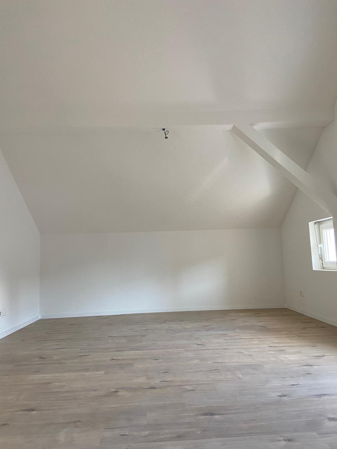 Die Wohnung wurde 2021 umfassend renoviert und überzeugt mit viel Charme durch die Dachschrägen und sichtbaren Elemente.