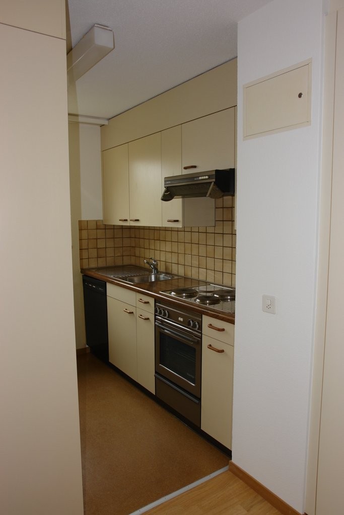 Die Küche präsentiert sich funktional und mit ausreichend Stauraum ausgestattet. Das Badezimmer ist gepflegt und praktisch eingerichtet. Die Wohnung verfügt über schöne Bodenbeläge sowie grosse Fenster, die für viel Tageslicht sorgen.