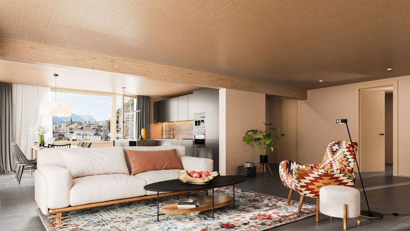In Steg entsteht mit dem Haus Grüesmeru eine hochwertige 5,5-Zimmer-Attikawohnung, die nachhaltige Bauweise, moderne Architektur und hohen Wohnkomfort vereint. Der Bezug ist auf Weihnachten 2026 geplant.