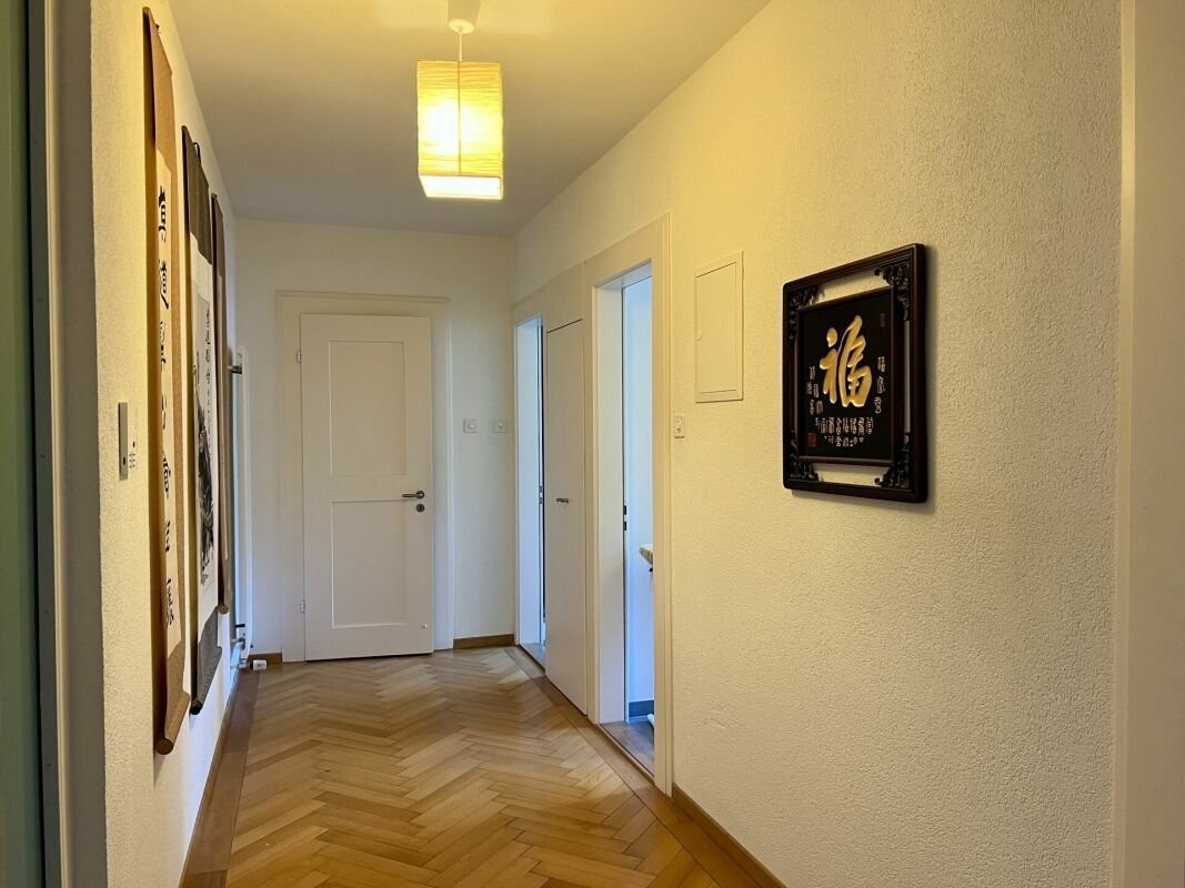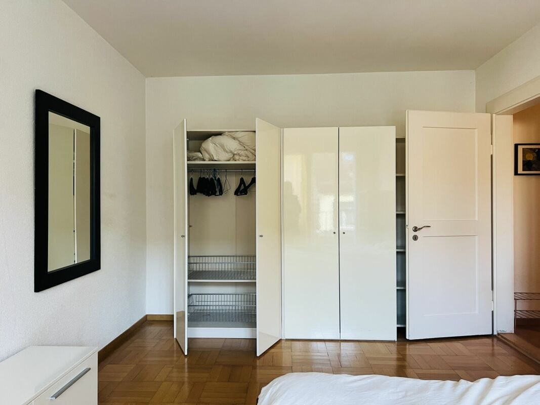 Die möblierte 2.5-Zimmerwohnung besticht mit den charmanten Parkettböden im Eingangsbereich, Wohnzimmer und Schlafzimmer.