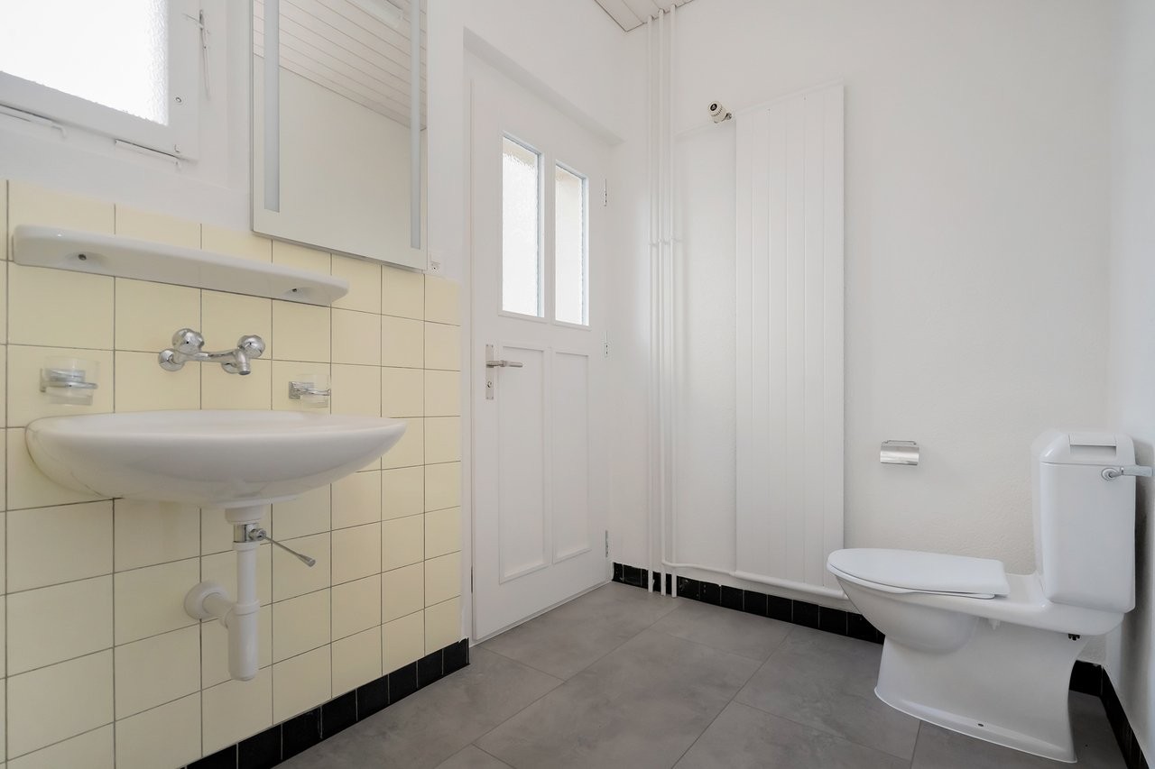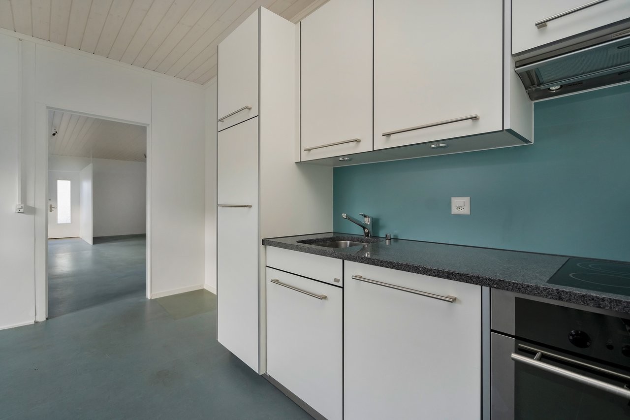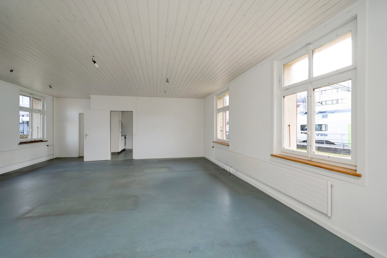 Der frisch aufbereitete Gewerberaum (stilles Gewerbe) eignet sich u.a. als Büro, Atelier, Therapieraum im Gesundheitswesen oder als Gruppenraum. 2 Parkplätze vor der Liegenschaft stehen zur Verfügung (CHF 60.- pro Platz) und optional könnte noch eine zusätzliche Garage gemietet werden (CHF 120.-).