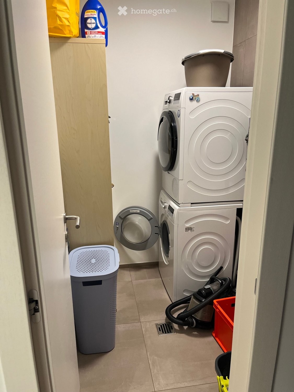 Locale lavanderia in casa con colonna lava asciuga della casa. Terrazzo che dà sulla sala.