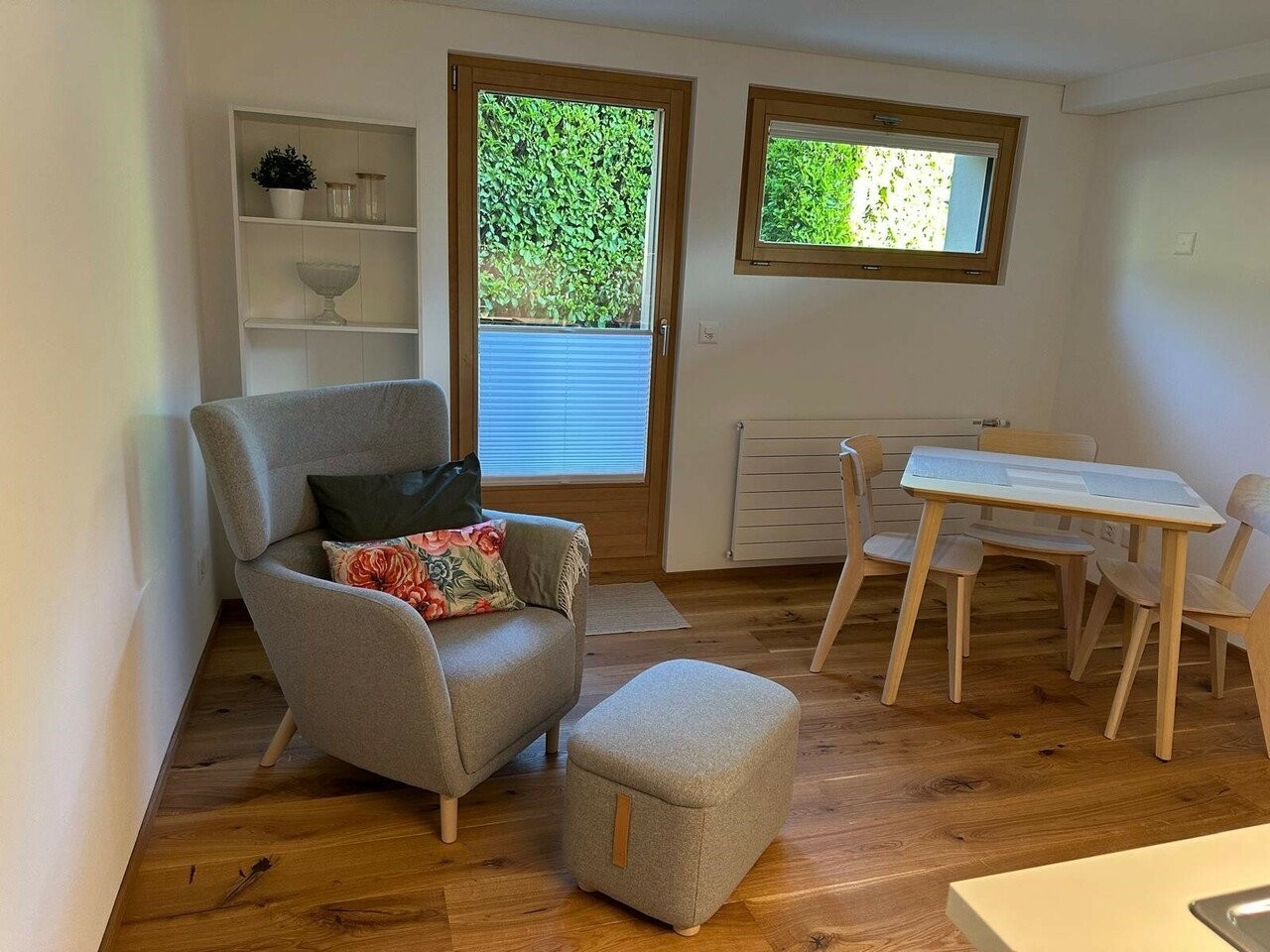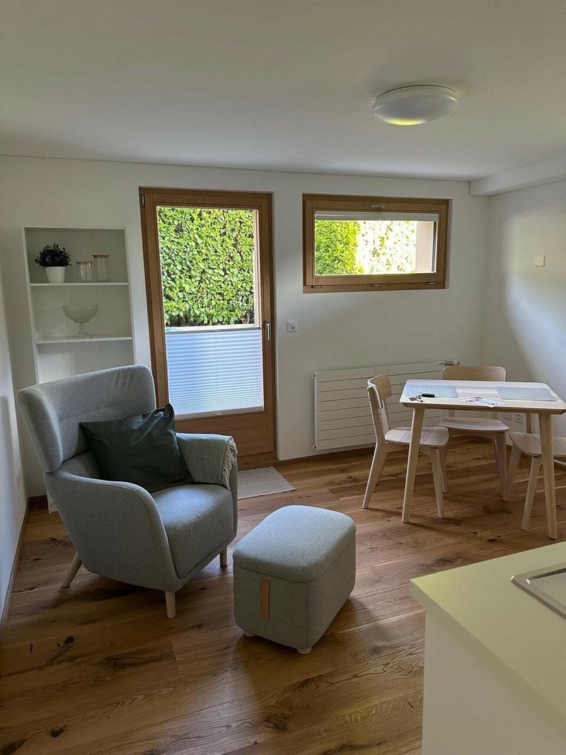 Wir vermieten ab 1. Juli oder nach Vereinbarung eine frisch renovierte und möblierte Einzimmer-Wohnung im Erdgeschoss eines Mehrfamilienhauses in Steg. Die Wohnung verfügt über: