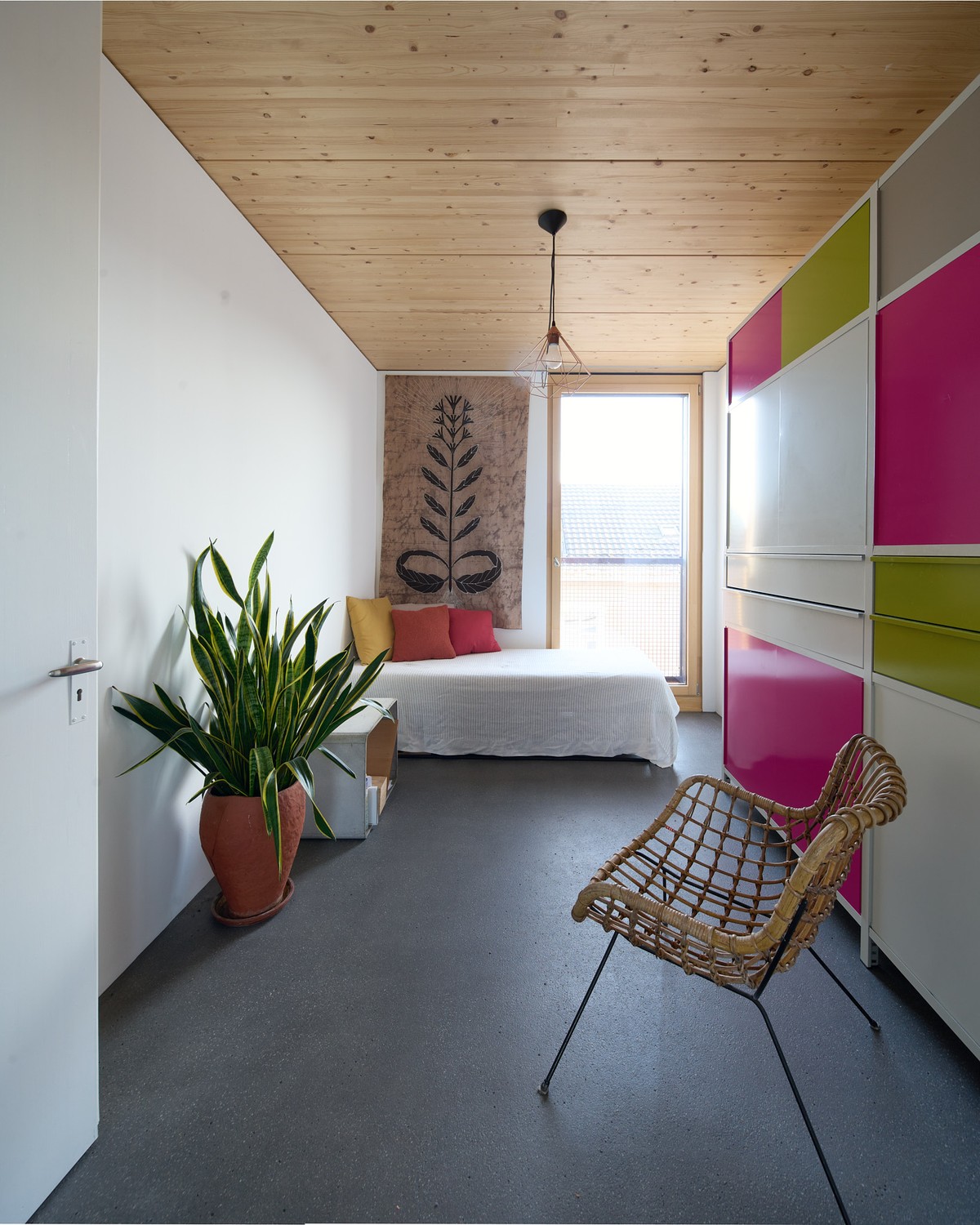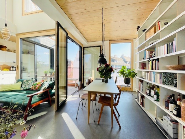 Es handelt sich um einen modernen zweistöckigen Neubau in Holz (4. und 5. OG). Im Innenausbau wurde viel Wert auf naturbelassene und schadstofffreie Materialien gelegt.