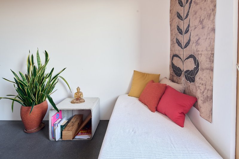 Die 40m2 gemeinsam benutzten und fertig möblierten Räume beinhalten 2 Bäder und ein Wohn/Essbereich mit Küche. Die 23m2 grosse Dachterrasse mit der wunderbaren Weitsicht, werden gemeinsam benutzt.