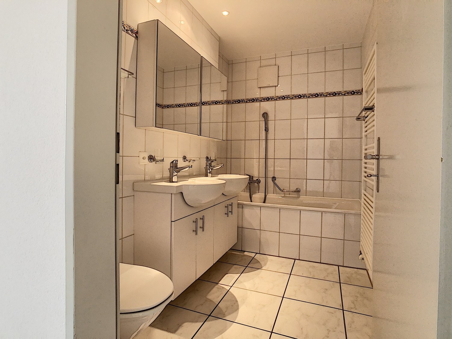 L'appartement se compose d?un grand hall avec de nombreuses armoires murales, un lumineux et spacieux séjour, une cuisine moderne et habitable, quatre chambres à coucher, deux salles-d'eau, une colonne de lavage-séchage, un réduit, une grande terrasse ensoleillée et une cave.