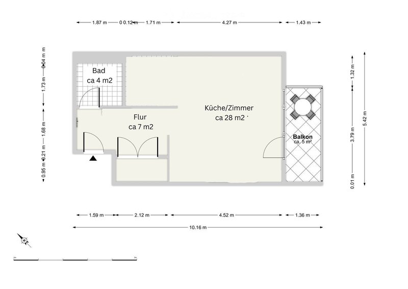 - Sonniger Balkon zum ruhigen Innenhof