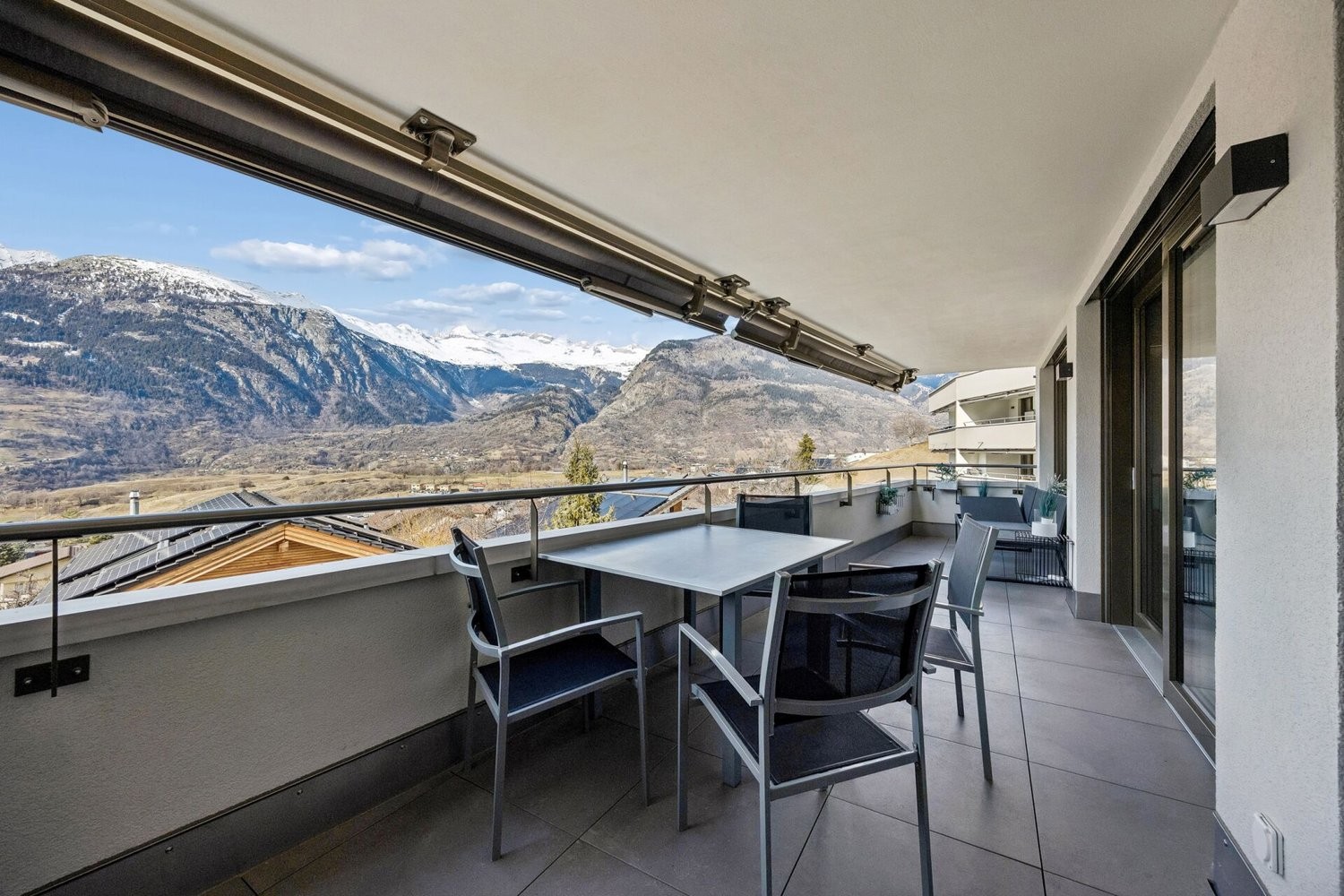 Zwei geschmackvoll gestaltete Badezimmer stehen zur Verfügung. Ein Bad mit Badewanne bietet Raum für Erholung, ergänzt durch ein weiteres mit Dusche, das funktionalen Komfort im Alltag gewährleistet. Ein praktisches Reduit mit integriertem Waschturm in der Wohnung erleichtert den täglichen Ablauf. Der grosszügige Balkon erweitert den Innenraum ins Freie und bringt ideale Voraussetzungen, um Sonne und Panorama in vollen Zügen zu geniessen. Die erhöhte Lage garantiert Privatsphäre und eine unverbaute Aussicht.