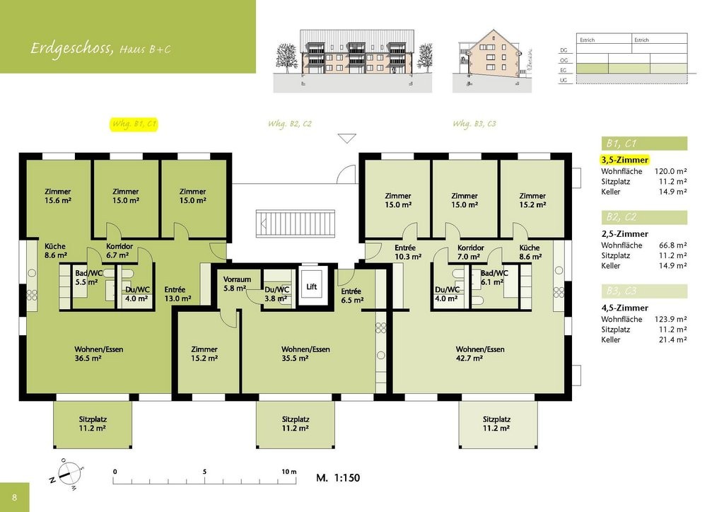 - Zu jeder Wohnung gehört ein Kellerabteil mit einem eigenen Waschturm (Waschmaschine/Tumbler)