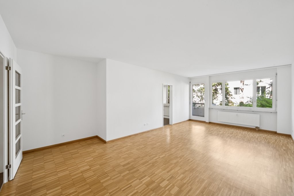- schöner Parkett in grossem Wohnzimmer mit Zugang zum Balkon