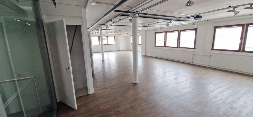 Die Fläche erstreckt sich über zwei Etagen und ist jeweils mit einer eigenen Küche sowie modernen Toiletten ausgestattet.
