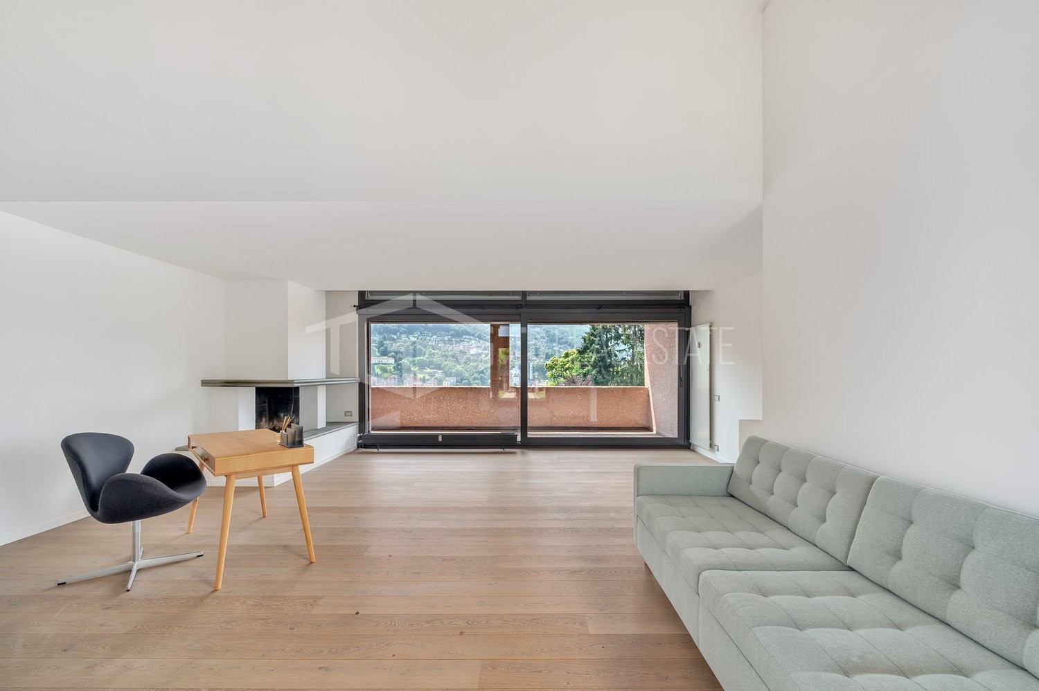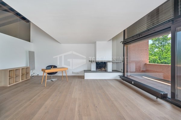 A Lugano, in zona lontana dal traffico e con spettacolare vista sulle montagne, proponiamo in affitto un duplex con spaziose terrazze e giardino.