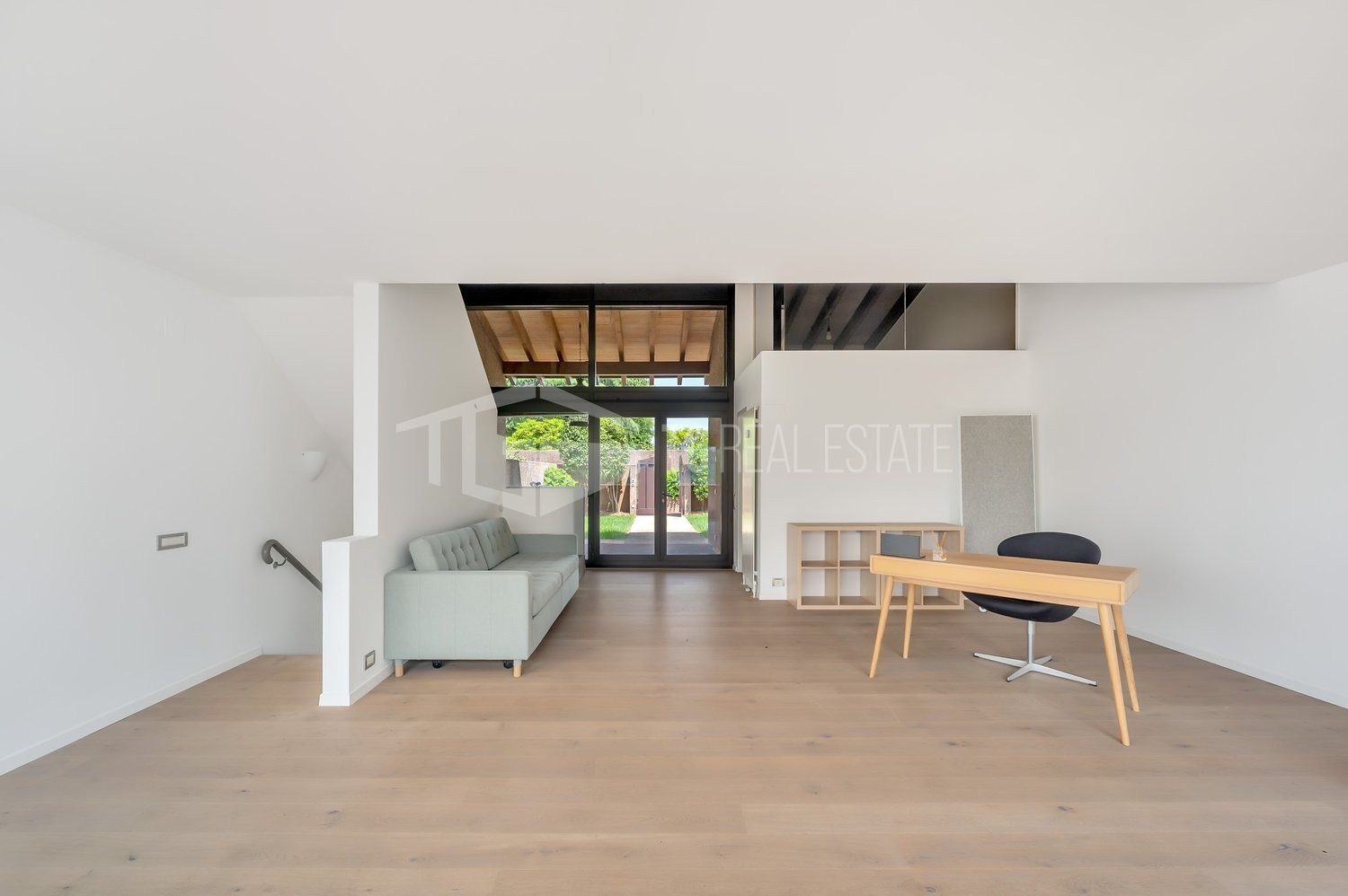 Dal soggiorno vi si accede sul giardino e la seconda terrazza coperta.