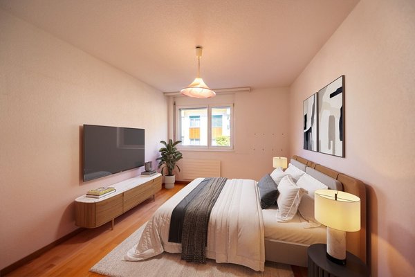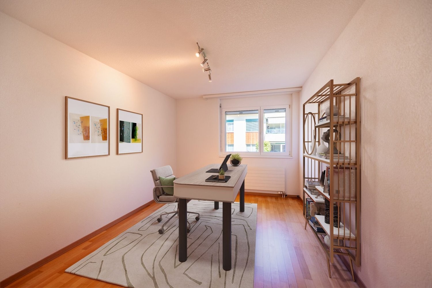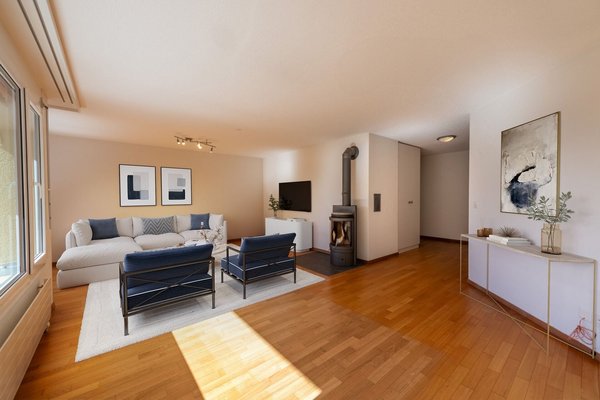 Es besteht die Möglichkeit, aus dem grosszügigen 48 m² grossen Wohnzimmer ein zusätzliches Zimmer mit 12 m² abzutrennen.