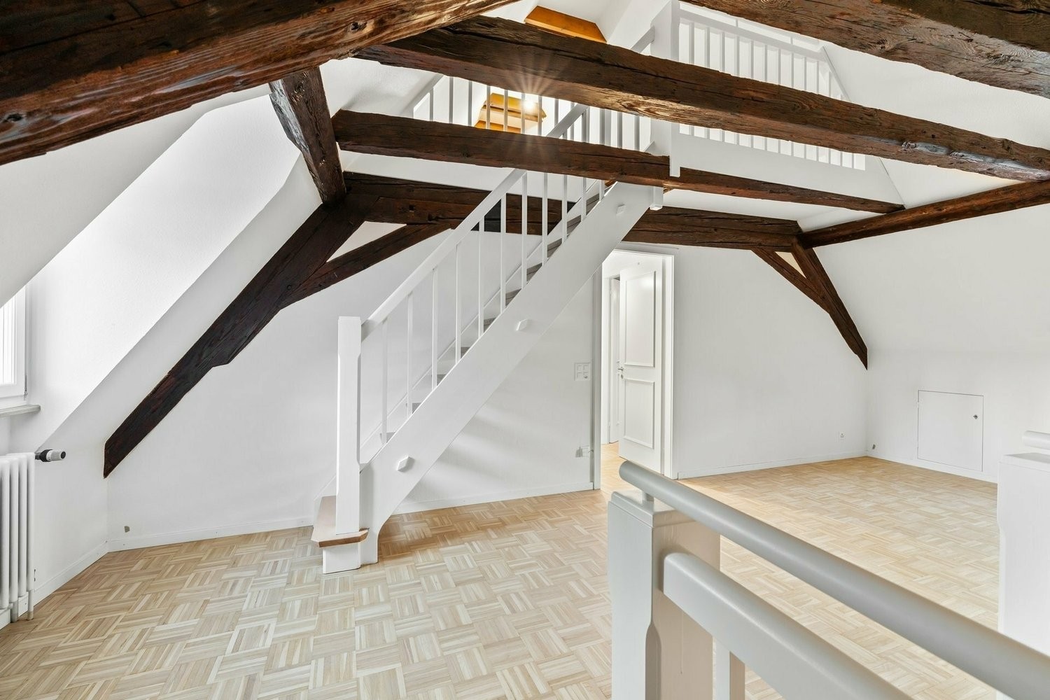 - Schöne, alte Treppe zum offenen Galeriezimmer