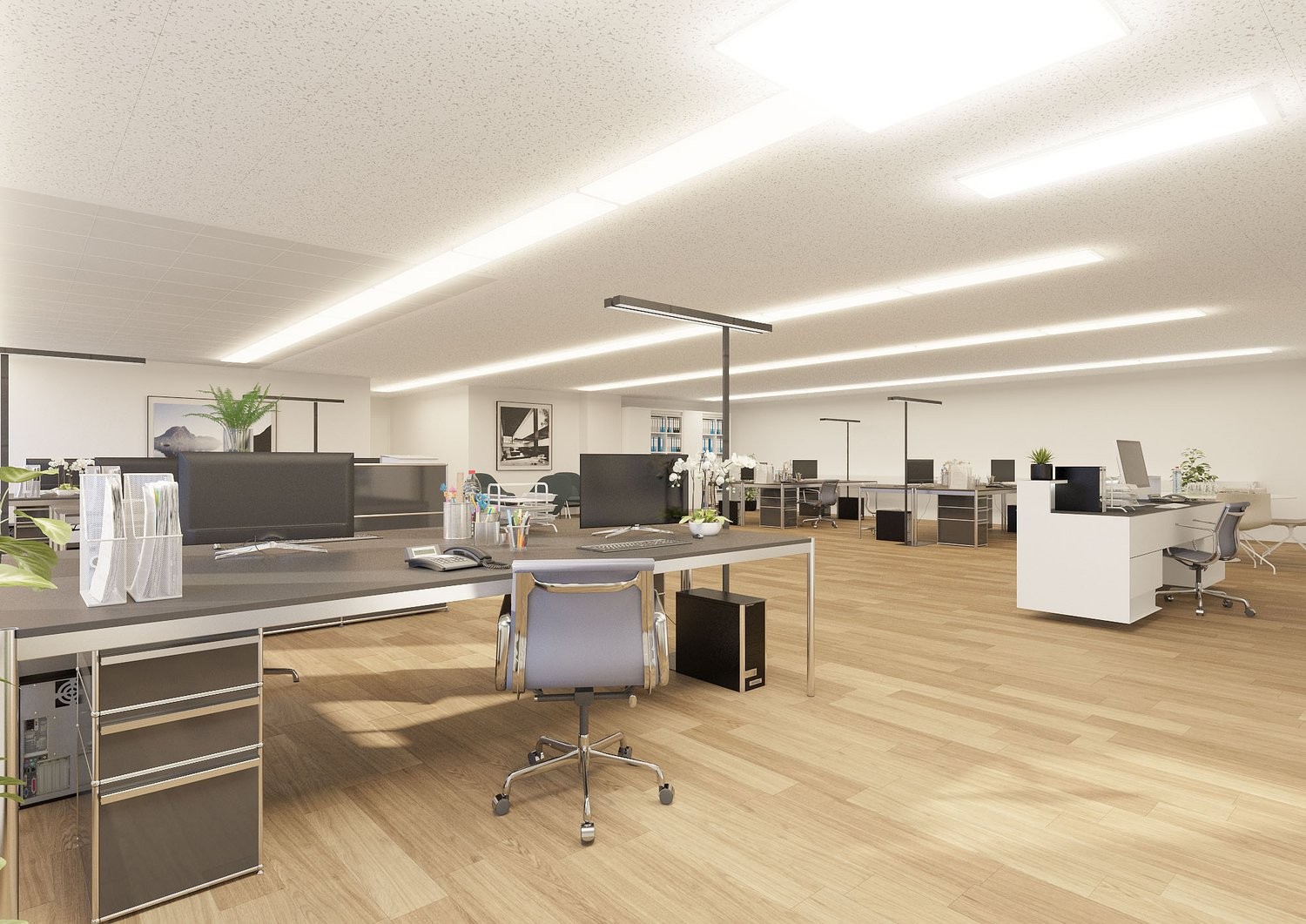 Kombination aus Grossraumbüro und separatem Einzelbüro