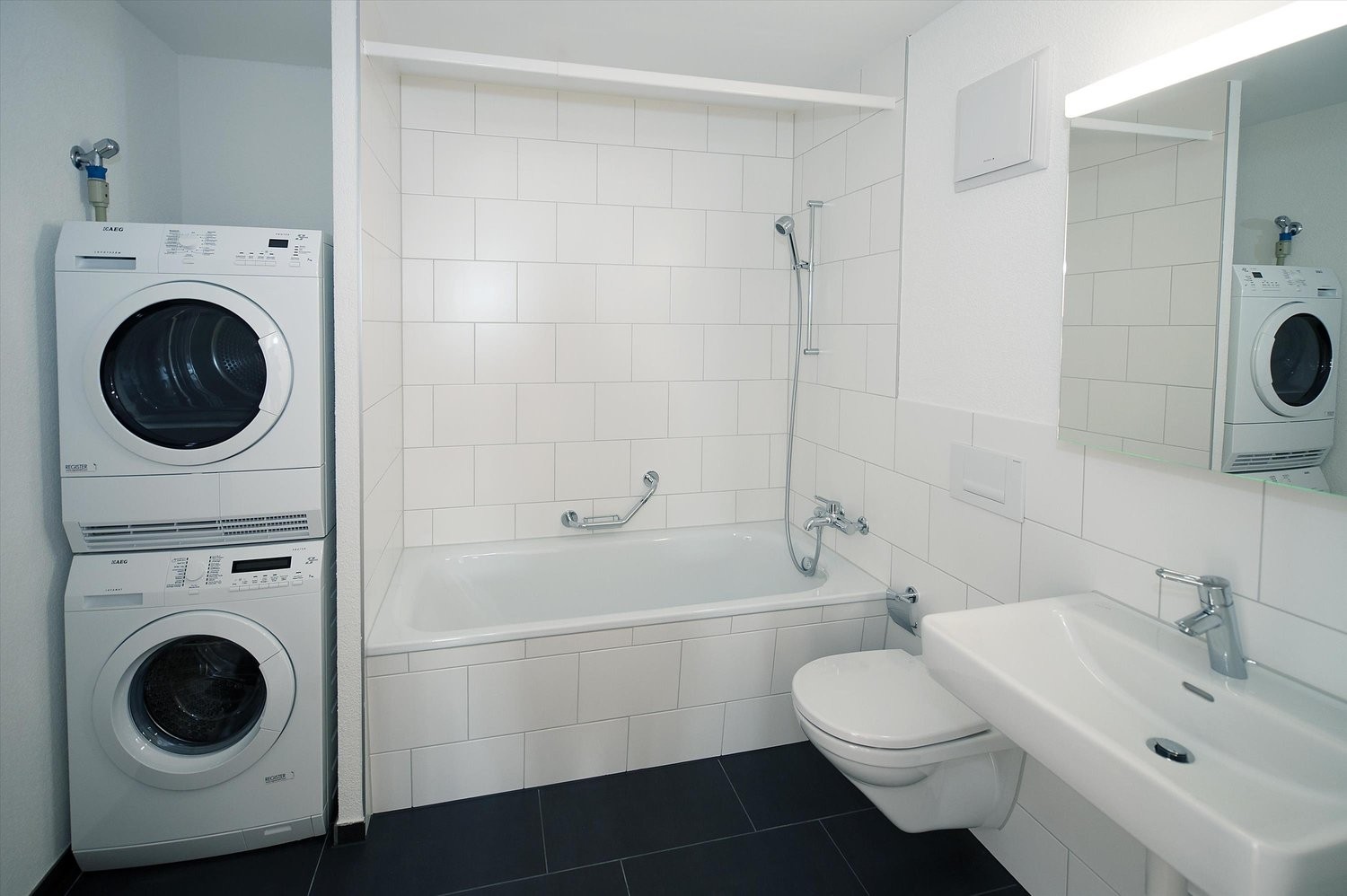 - Eigener Waschturm mit Waschmaschine und Tumbler