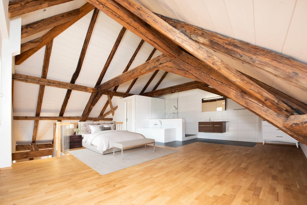 - wunderschöne Dachschrägen mit sichtbaren Holzbalken